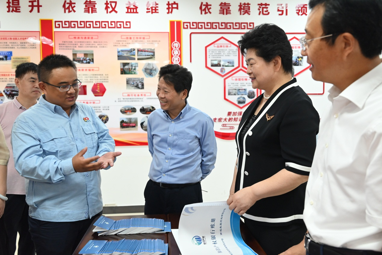 公司董事長、總經(jīng)理袁擁軍代表公司全體員工對(duì)蔡毅德一行表示熱烈的歡迎,并陪同參觀了公司黨群活動(dòng)室、產(chǎn)改工作室,詳細(xì)介紹了在公司“五彩黨建”引領(lǐng)下,以“五個(gè)依靠、五心工程”為抓手開展的一系列產(chǎn)改工作。袁擁軍匯報(bào)了公司近年來在黨建工作、生產(chǎn)經(jīng)營、科技創(chuàng)新、人才培養(yǎng)、產(chǎn)業(yè)工人改革等方面取得的優(yōu)異成績。調(diào)研過程中,來訪人員饒有興趣的了解了公司 “員工幸福計(jì)劃”、“知識(shí)產(chǎn)權(quán)銀行”制度、“青藍(lán)工程”等亮點(diǎn)工作和做法,并給予高度肯定。袁擁軍向來訪人員贈(zèng)送了由公司黨員和管理骨干開展讀書征文活動(dòng)編撰的 “單位如家、感恩有我”、“奮斗如歌”、“責(zé)任如磐、攻堅(jiān)有我”系列叢書。