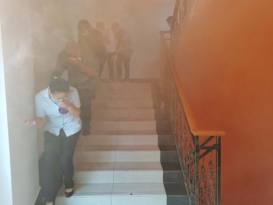 培訓(xùn)課結(jié)束后,參訓(xùn)人員還進(jìn)行了干粉滅火器滅火演練和應(yīng)急疏散演練活動。此次應(yīng)急疏散演練,既增強(qiáng)了員工的安全意識,又提高了員工逃生避險的技能,為創(chuàng)建“平安單位”打下了堅實的基礎(chǔ)。