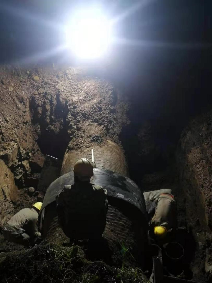 2021年5月2日凌晨3:00,經(jīng)過(guò)48小時(shí)的前期準(zhǔn)備及近5個(gè)小時(shí)的精心施工,漳河鎮(zhèn)大栗樹(shù)段DN1200源水管線順利完成搶口。目前城區(qū)供水已經(jīng)恢復(fù)正常。