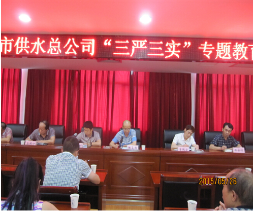 4月26日下午,市供水總公司在六樓會(huì)議室召開三嚴(yán)三實(shí)專題教育活動(dòng)動(dòng)員會(huì),黨委書記、總經(jīng)理陳永根聯(lián)系公司實(shí)際為全體黨員上黨課。公司全體賞、中層以上干部100余人參加,會(huì)議由黨委副書記、紀(jì)委書記、工會(huì)主席徐黎明主持。