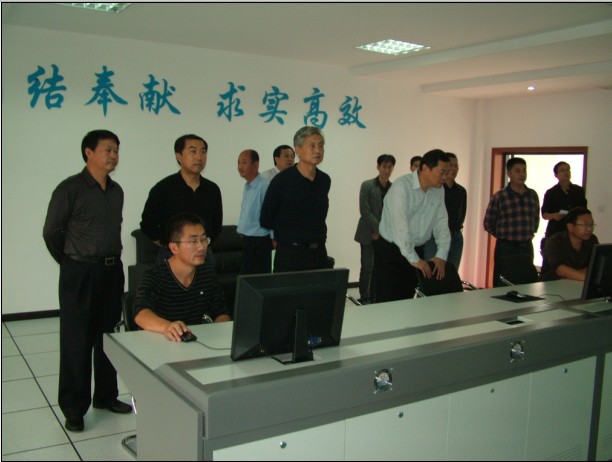 10月10日,省委第八巡視組組長(zhǎng)詹才泳在副市長(zhǎng)黃愛國(guó)、市住建委主任楊劍、市供水總公司總經(jīng)理陳衛(wèi)國(guó)陪同下視察楊樹港污水處理廠。圖為在調(diào)度監(jiān)控中心察看污水處理工藝的情景。