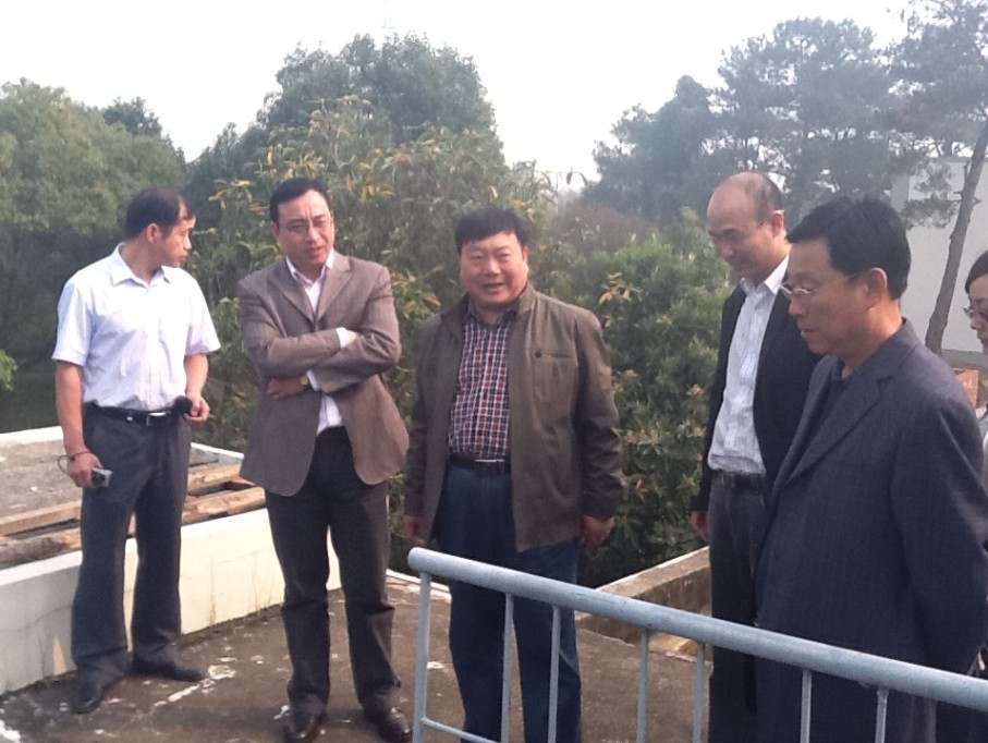 10月21日,省物價局環(huán)境與資源價格處吳賢武處長(左三)、成本調查監(jiān)審分局吳勤民科長(左二)在市物價局局長汪順彪(右二)、總公司黨委書記陳永根(右三)陪同下視察市二水廠。