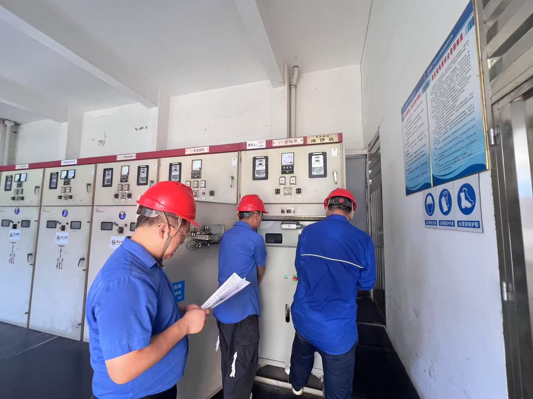 上圖為維修保障小組正在切換備用電源