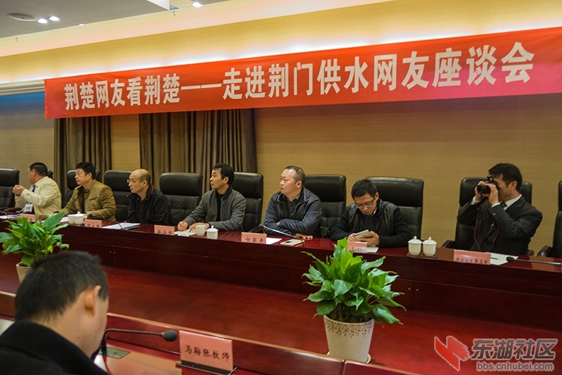 “荊楚網(wǎng)友看荊楚 —— 走進荊門”活動探訪團的網(wǎng)友們,于2015年11月7日下午,在下榻的荊門避暑山莊國賓酒店一樓會議室參加了 “荊楚網(wǎng)友看荊楚 —— 走進荊門供水網(wǎng)友座談會”;座談會上供水總公司的黨委書記陳永根等同志向大家介紹了其單位的基本情況及近十年的業(yè)績和今后的工作規(guī)劃,供水總公司的領導還與網(wǎng)友們零距離的進行了交流。