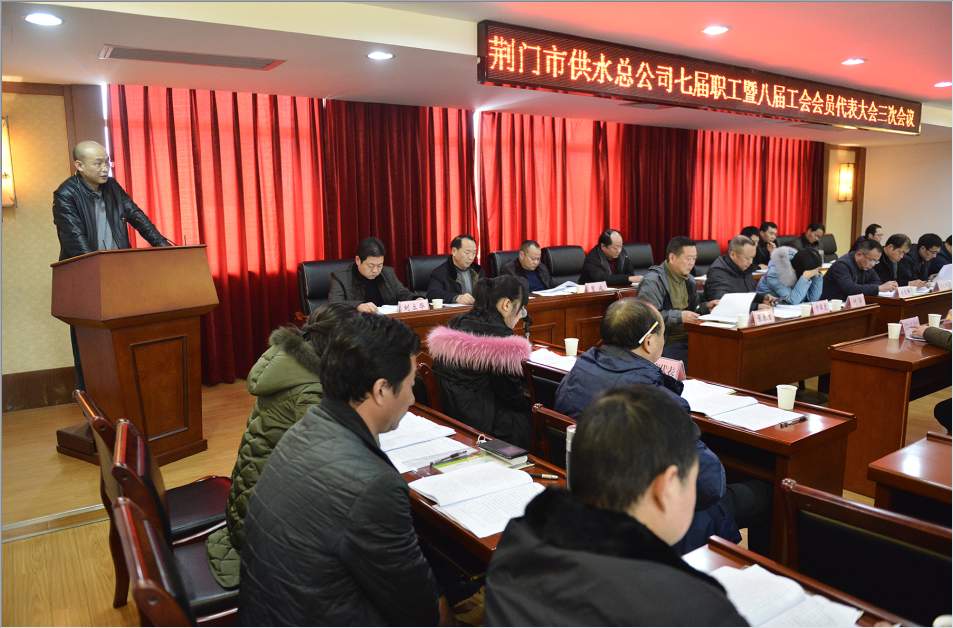 會議在莊嚴(yán)的國歌聲中開幕。公司黨委書記、總經(jīng)理陳永根作了《2016年度公司工作報(bào)告》,認(rèn)真總結(jié)了2016年度取得的各項(xiàng)成績;供水設(shè)施建設(shè)投資體制理順、5條道路供水管道改遷提前完成、國賓酒店環(huán)評獲批;管黨治黨高度前所未有、項(xiàng)目建設(shè)力度規(guī)??涨?、公司主輔業(yè)產(chǎn)值連續(xù)五年雙過億,總額首次突破3億元等??陀^分析了當(dāng)前企業(yè)發(fā)展存在的機(jī)會和挑戰(zhàn),并對2017年度的工作作出了展望。黨委委員、工會主席馬兆芳,黨委委員、總會計(jì)師劉高軼分別作了《2016年度工會委員會工作報(bào)告》、《荊門市供水總公司2016年度財(cái)務(wù)預(yù)算執(zhí)行及2017年財(cái)務(wù)預(yù)算草案編制報(bào)告》、《荊門市供水總公司2016年度工會經(jīng)費(fèi)執(zhí)行及2017年工會經(jīng)費(fèi)預(yù)算情況報(bào)告》。職工代表提案審查小組組長卞軍虎對七屆職工暨八屆工會會員代表大會二次會議職工代表提案辦理情況作了報(bào)告,七屆職工暨八屆工會會員代表大會二次會議共收到34份職工提案,實(shí)際需要回復(fù)和辦理的提案為32份,已辦結(jié)的有27份,正在落實(shí)的5份,報(bào)告中對正在落實(shí)的提案進(jìn)行了說明。工會副主席張春生對本次會議征集職工代表提案作了報(bào)告,本次會議共收到19份提案,其中涉及經(jīng)營管理的5份,技術(shù)改革的1份,教育培訓(xùn)的1份,薪資福利待遇的12份。會議期間,與會代表給予六個(gè)報(bào)告充分肯定,圍繞各項(xiàng)工作報(bào)告,進(jìn)行了熱烈討論,提出了許多寶貴的建議和意見。